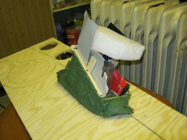 Erstes Spachteln um dem Gerüst etwas Stabilität zu geben
