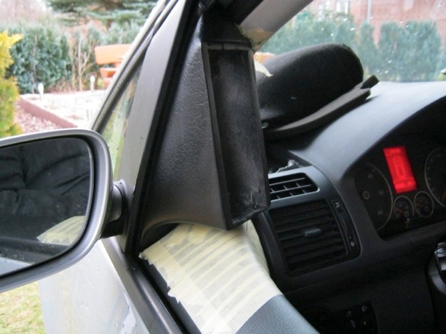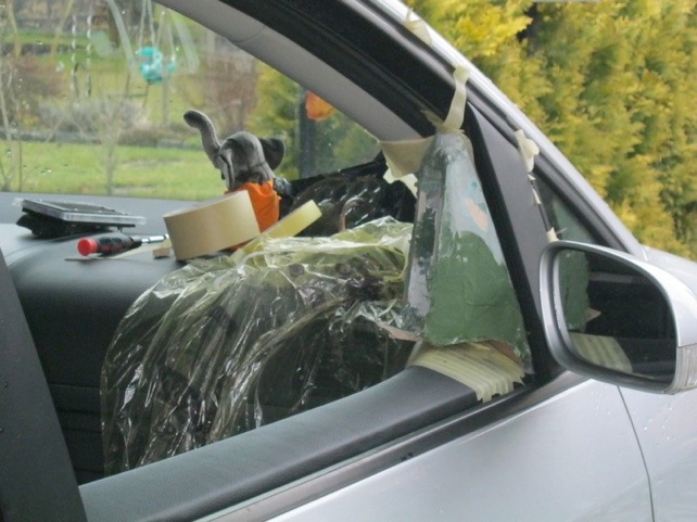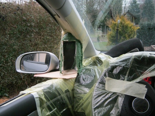 Die Anpassung an die A-Säule kann nur im Auto gespachtelt werden