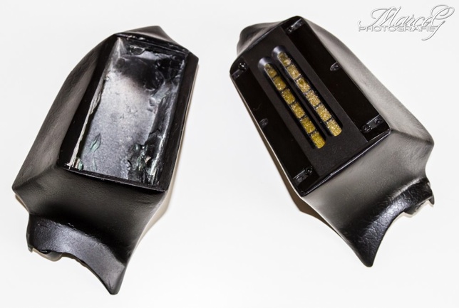 Und noch mal spachteln, diesmal mit der Hochtonabdeck- ung um das Gehäuse daran anzupassen.